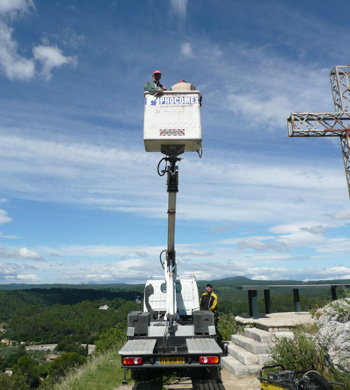 la nacelle mise à la disposition de nos trois compagnons par la Mairie - Croix du Castellas et la Table d'Orientation - Vallon des Carmes à Barjols - (juillet 2014)