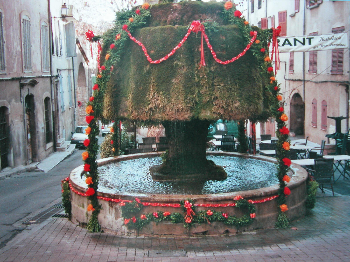 la fontaine du Champignon décorée pour la Saint Marcel en 2007...