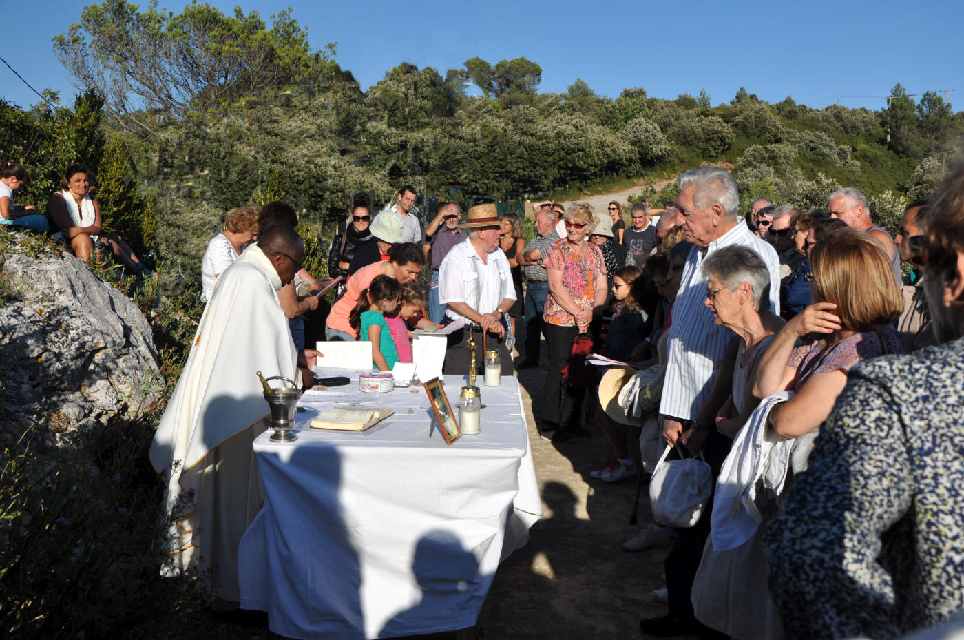la célébration de la messe par le Père Daniel à la Croix du Castellas le 15 août