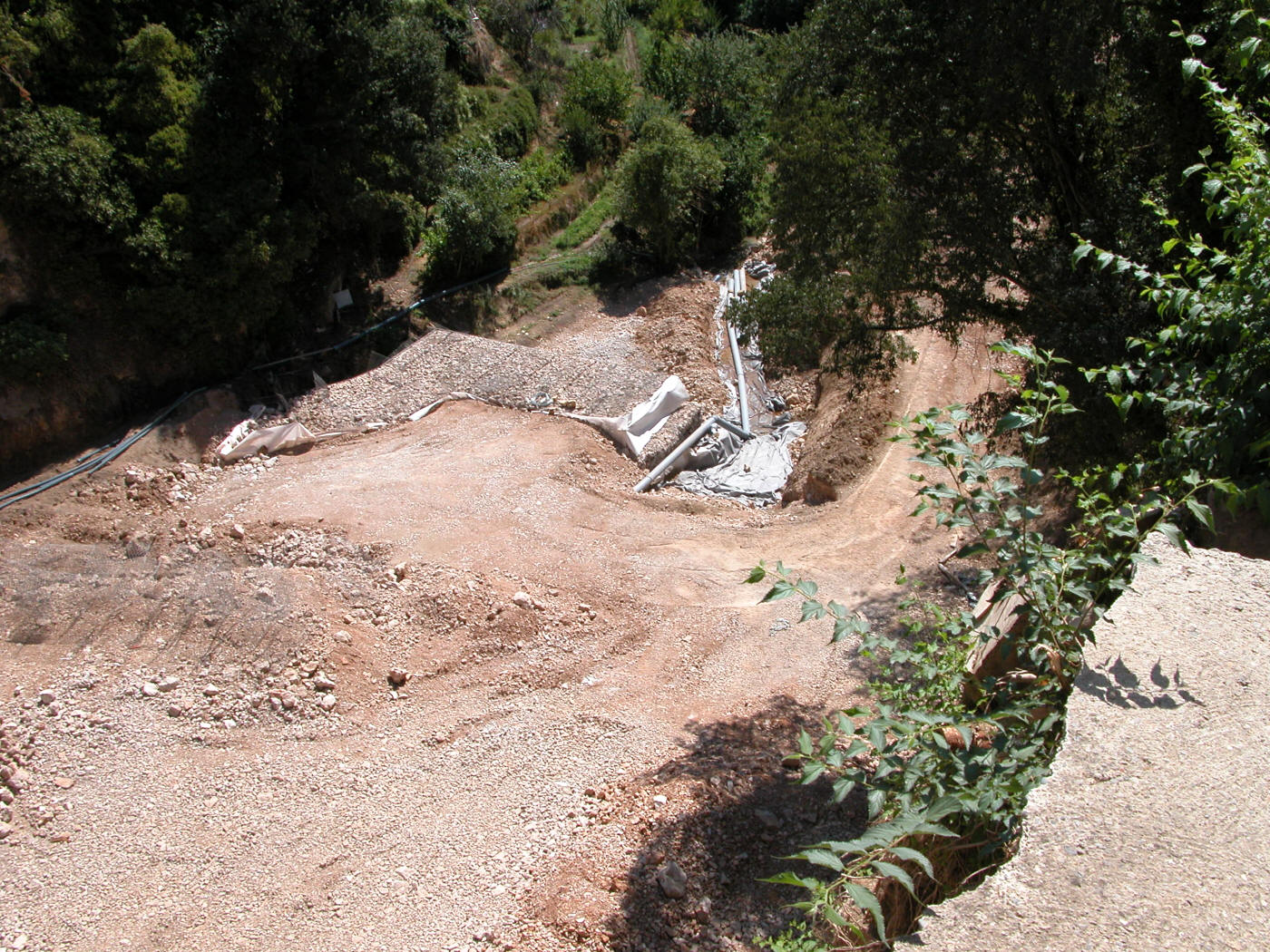 la construction de la dernière cascade de la Fontaine de Roubaud le 30 août 2003 (on aperçoit les gabions: pierres taillées et posées à la main)