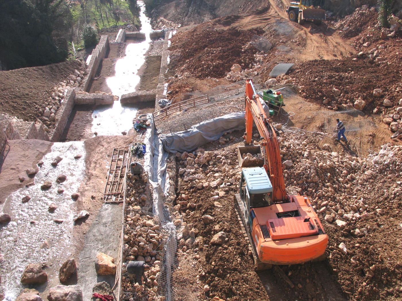 la réalisation des cascades de la Fontaine de Roubaud (photo prise du pont le 2 février 2004 - utilisez l'ascenseur vertical)