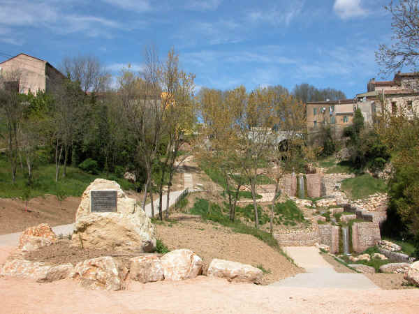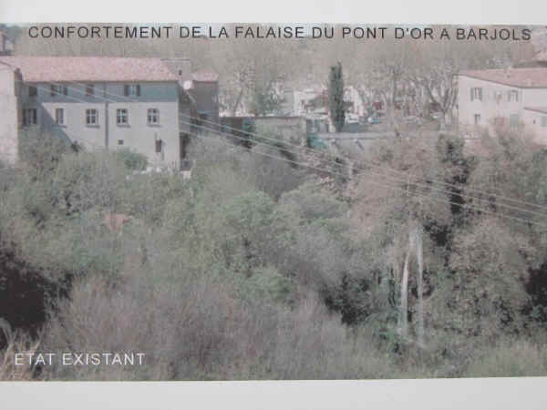 l'aménagement de la falaise du Pont d'Or (maj:01/10/2016) et des cascades de la Fontaine de Roubaud (2003-2006) ce chantier a nécessité 25 000 m3 de remblais et 2 500 m3 de gabions(pierres taillées et posées à la main)