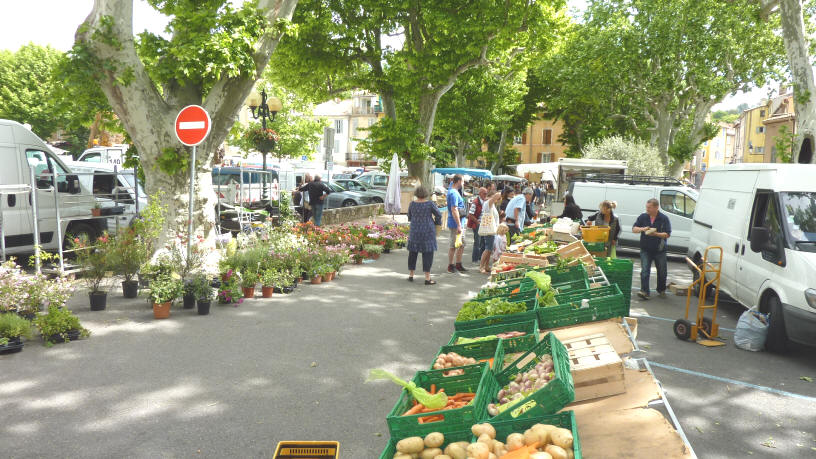 Tous les dimanches matin un marché provençal (place de la Rouguière) vous offre tous les produits locaux (fruits et légumes de saison, fromages, fleurs, huile d'olive...etc) (en cours d'élaboration - maj: 26/05/2016 - cliquez sur les photos)