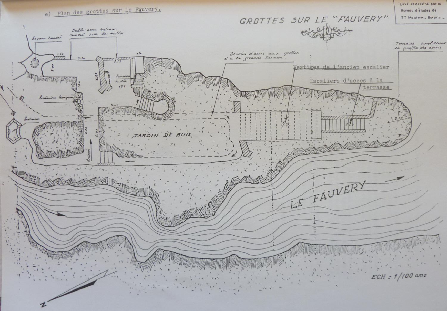 plan (Vaillant) des grottes sur le Fauvery aux Carmes à Barjols