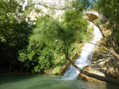 Vous apercevrez sur le côté gauche des cascades un sentier qui vous mènera sur le Pont d'Or et sur la place de la Rouguière (2) La place de la Rouguière : L'origine de son nom viendrait du