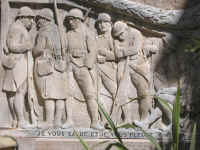 fontaine, on peut reconnaître en habits de poilus avec casque, musette,