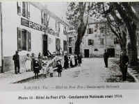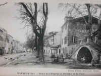 provençal "rougiero", vairon, petit poisson très commun des ruisseaux. La couverture septentrionale de ce vallon a duré probablement plusieurs années et cela après que, grâce aux "prestations", on ait construit, dans la première moitié du XVIII ème siècle, le "Pont d'Or" ou le pont de la fontaine de Roubaud. C'est donc entre 1750 et 1770 que cette couverture a été réalisée. C'est une grande voûte (photo agrandi)) bien faite sous laquelle on pouvait se promener. C'est en se cachant sous celle-ci que l'on entraînait autrefois la broche du boeuf de Saint Marcel. En 1782 et probablement avant, cette place servait de lieu de foire et de battage des céréales. Au fil du temps, des maisons ont été construites des deux cotés, et en 1801, la "bourgade de la Rouguière" était déjà l'un des quartiers les plus peuplés de Barjols. Peu à peu elle ne servit plus qu'au "Pré de Foire" et elle fut goudronnée vers 1955. Cette majestueuse place permet la manifestation des "Petites et surtout des Grandes Saint-Marcel", quand on fait rôtir le boeuf embroché tout entier. Par ailleurs il s'y déroule de nombreux concours de boules et depuis 1977, au cours de la deuxième quinzaine d'août, la Foire du Cuir.