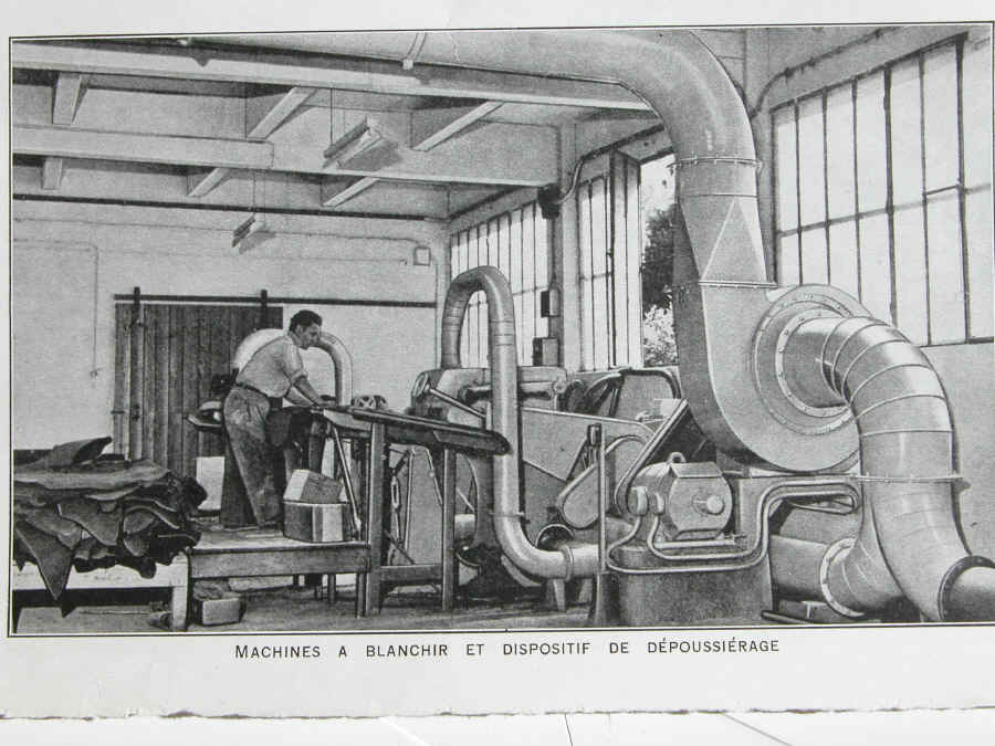 tanneries Machine à blanchir et dispositif de dépoussiérage pour les cuirs tannés 'végétal' (Mr Marcel Canebié)