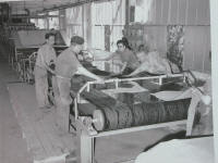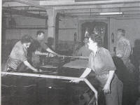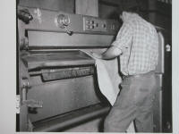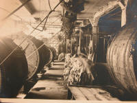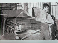 14 - le battage ou le cylindrage : selon la destination du cuir à semelle, le client peut rechercher des semelles très fermes, on utilisera alors la machine à battre. Si, au contraire, on recherche du cuir moins ferme, voire souple, on utilisera la machine à cylindrer. 15 - la pesée : après un petit complément de sèche et un échantillonnage, les cuirs sont pesés car ils sont vendus au poids |