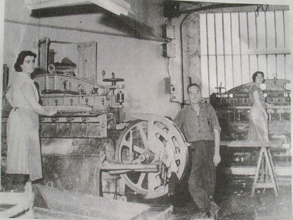l'intérieur d'un atelier de "refendage" de la tannerie "Paul Vaillant "en 1959