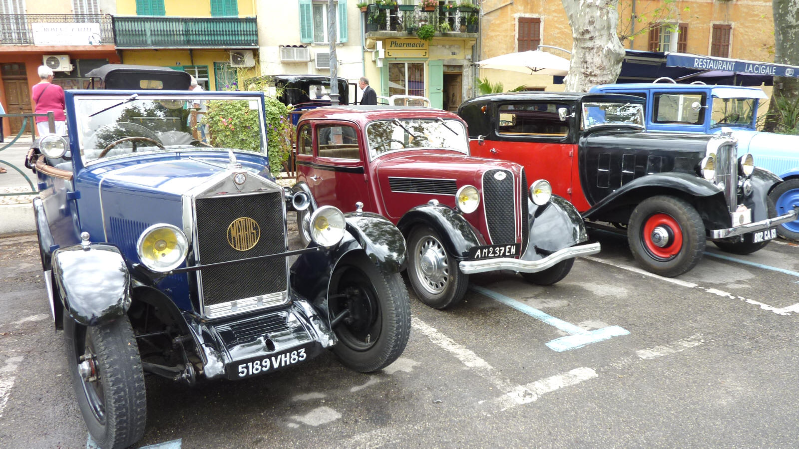 des Voitures Anciennes bien rangées sur la Place de la Rouguière en 2010